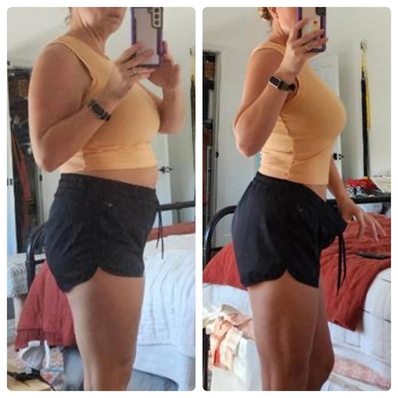 In 3 months, I lost over 20lbs and I'm down from a size 6/8 to a size 2/4 in jeans But more importantly I'm getting healthier and more fit. working now on firming and building muscle. Get a good trainer! I hired a virtual trainer has been a game changer.She has taught me I don't need to kill myself at the gym every single day, lifting heavy weights is key and I don't need to starve myself. Brooke Johnson is seriously the best and everyone should hire her.